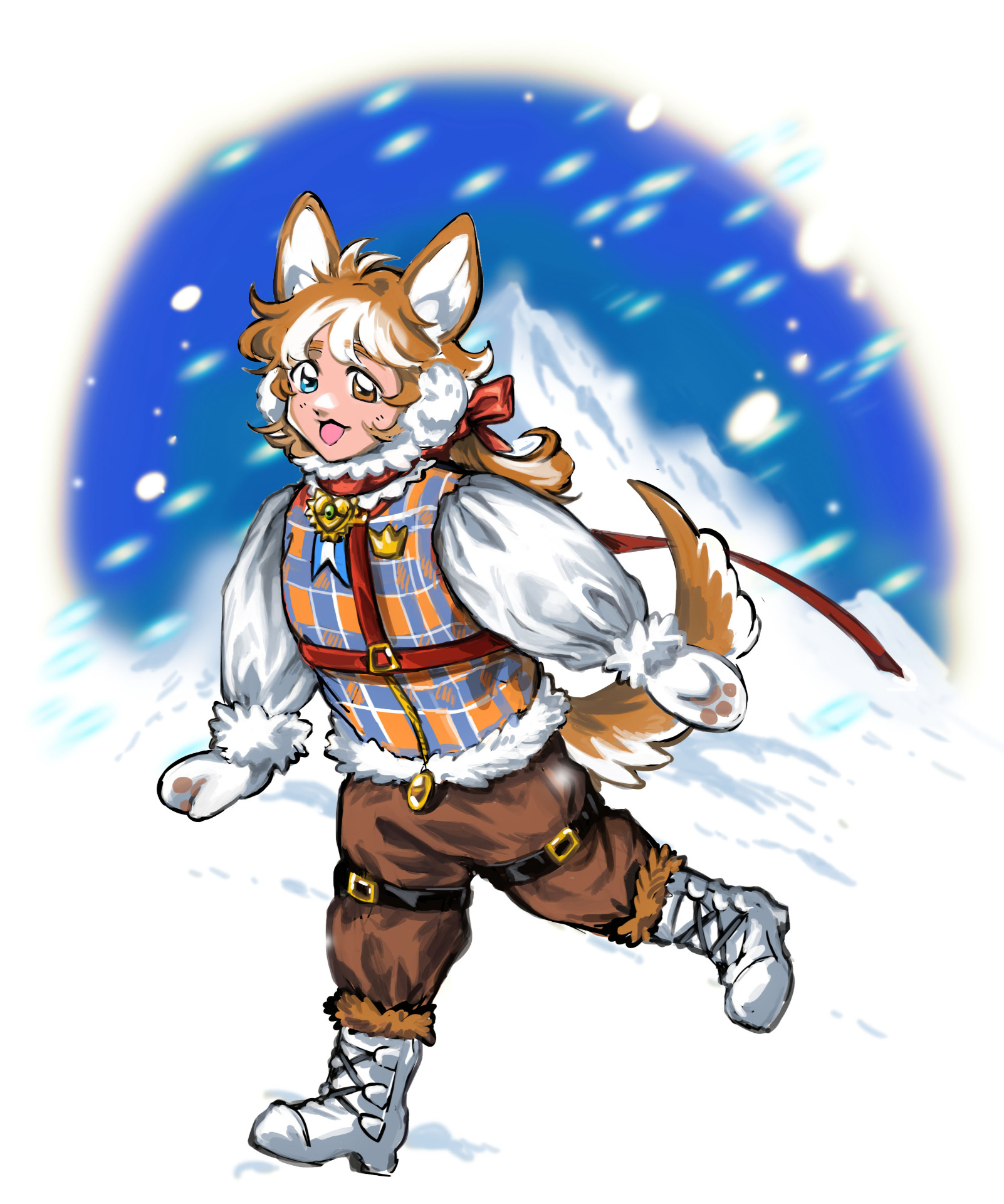 Timothy was a unique corgi born in the windy land of Holyhead, Wales, under the care of a refined noble family, the Bestwicks. Corgis are much beloved loyal pets, and keeping them is a long-standing tradition of the British Crown. They are often gifted to powerful nobility as a sign of good faith. One of the most beloved royal corgis was once gifted to a duke in northern Wales. There on a stormy night, this beloved and pregnant corgi gave birth to a single little puppy different from her kind. It was Timothy - a mixed breed of a corgi and Husky. Since he was little, Timothy showed excellent resistance to the cold and had a robust and resilient personality despite his adorable looks. He would sneak outside the Manor to wander in the snowy fields during the winter, bringing back the most exquisite treasures like stones, sticks, and even tiny little conches swept up by the marine gusts of Holyhead.One day young Lord Bestwick had to travel to the cold lands of Alaska to meet old family friends. When Timothy realized his beloved owner was going on a trip, he couldn't resist sneaking into his luggage and traveling along to snowy Alaska. He did not go hungry or ill after such a long and troubling voyage, to everyone's surprise. Instead, he was rather excited and ready to experience the wintery land that spoke so closely to him.During one of the long walks he would take with the young lord, nightfall came, and the two ended up losing their way in the dark, icy forests. The situation quickly became dire as the young lord struggled to keep moving forward in the biting cold of the Alaskan night. Saving his master was Timothy's only priority, and instinctively he knew what to do. As quickly as he could, he darted through the dark of the night in search of aid, never giving up on his short legs. He eventually reached the Ilion sanctuary, surprising the musher and all the dogs with his unexpected arrival. The musher quickly understood that Timothy was in a pinch and followed him to help Young master Bestwick. Together with the musher, he saved the young lord and spent the night in the sanctuary.Young lord Bestwick fell in love with Ilion that night and was delighted to listen to the musher's remarks on Timothy's outstanding speed and endurance. He realized that his beloved Tim was happier than ever in the company of all the other dogs; Timothy had found his true calling. The young master entrusted Timothy to the musher, knowing that he would live his life to the fullest there and be able to release his never-ending energy in the fields of Illion. Before departing, he gifted his beloved Timothy with regalia from his family-- the Bestwick medallion, along with the promise to visit him every year during the wintertime.